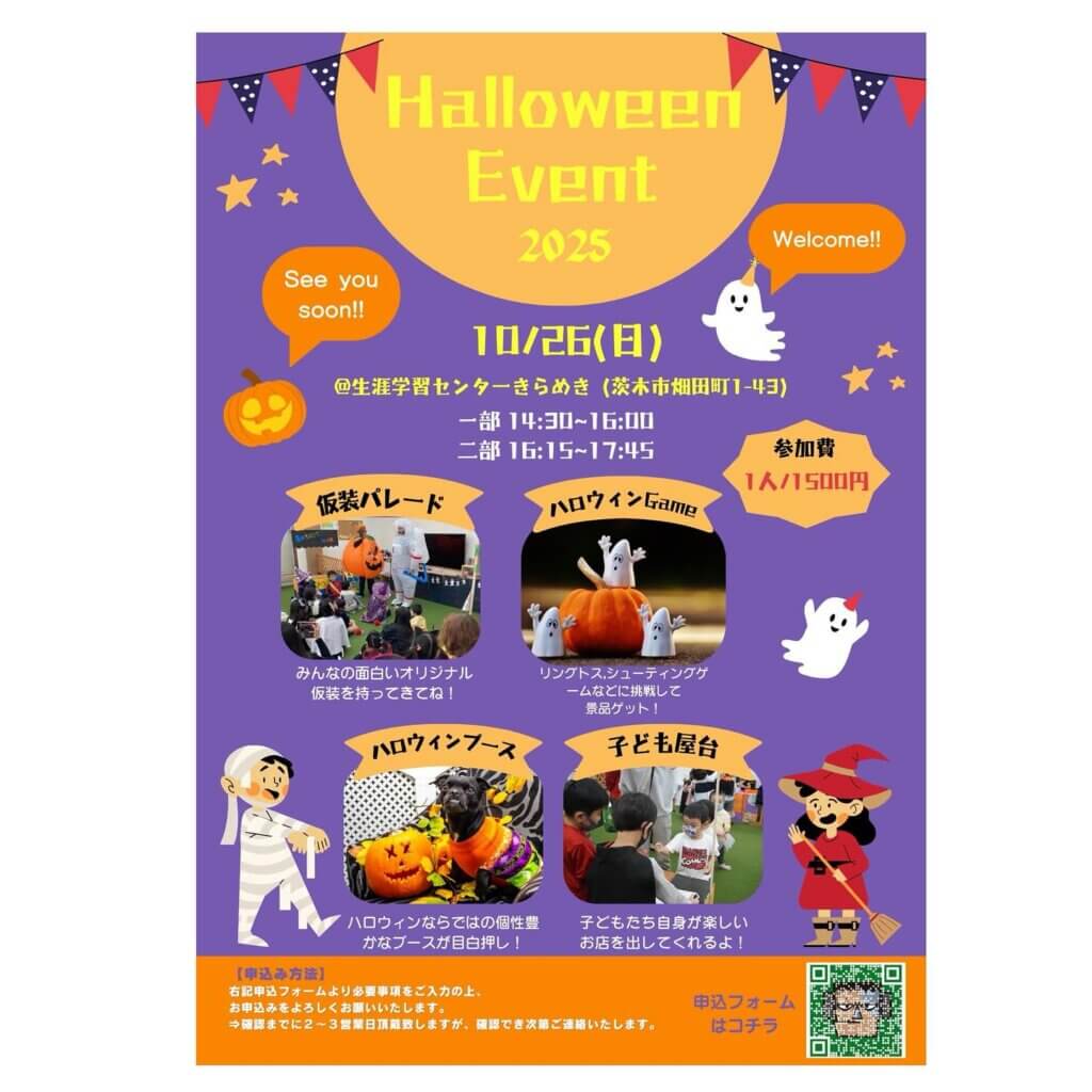 年もハロウィンの季節がやってきた!👻 10月26日(日)は、みんなで仮装して楽しもう♪ 📍開催場所 生涯学習センターきらめき(茨木市畑田町1-43) 🕒開催時間 ・1部:14:30〜16:00 ・2部:16:15〜17:45 💰参加費:1人1500円 👻イベント内容 🎭仮装パレード... Blog