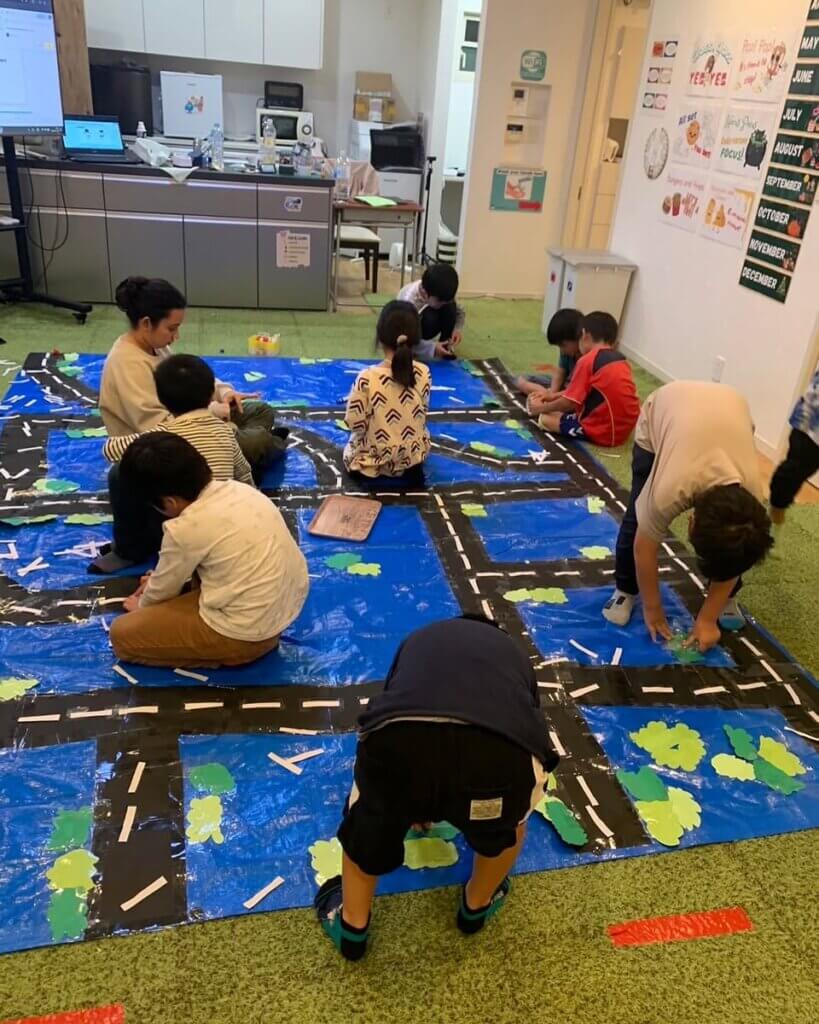 Build a city. What do we need to make a good city?? Hospital? Roads? Park? みんなで一生懸命考えて作りました!! Great job!!