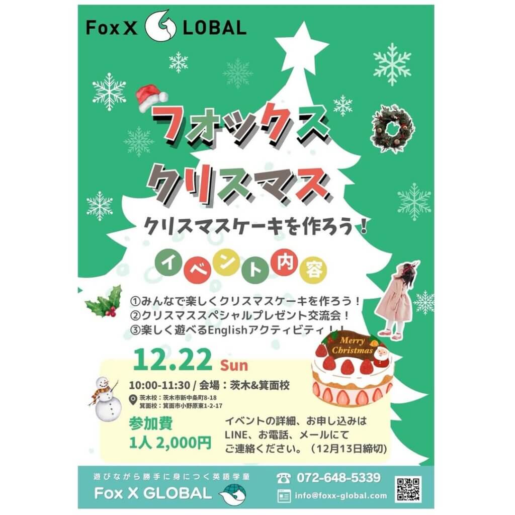 日程 12月22日 時間 10:00〜11:30 対象 ・3〜12歳のお子様 →入会者以外の方も参加可能なので、お友達も是非お誘いください! 場所 フォックスグローバル 茨木中条校(茨木市新中条町8-18) & 箕面小野原校(箕面市小野原東1-2-17) 参加費 子ども1人/2000... -