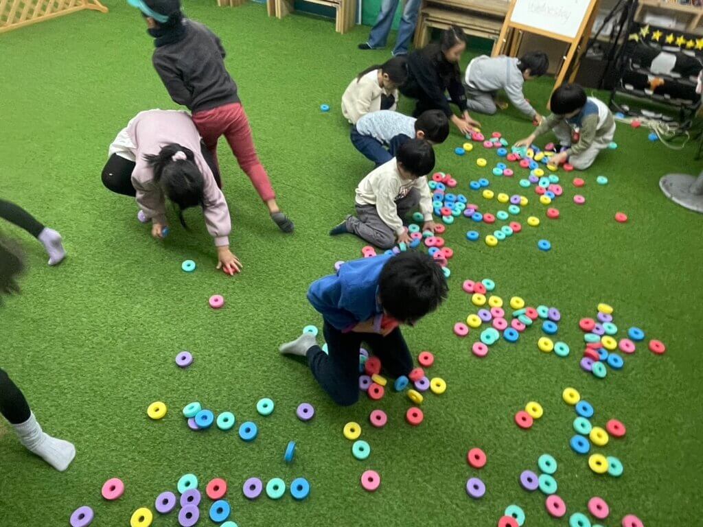 この日もたくさん遊びながら英語を学びました! Kids had so much fun picking up the colorful rings while practicing English words. 遊びながら自然に英語が身につく環境を大切にしています! Would you like to join us? Let's enjoy learning together! -