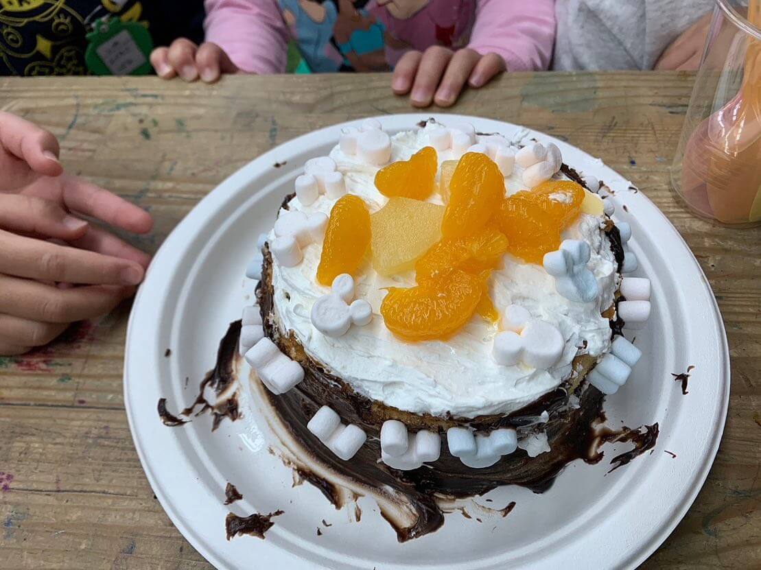 みんなで食材選びから行い、その後チームで話し合いながら自分達のイメージに沿ったデコレーションケーキを作っていきました!