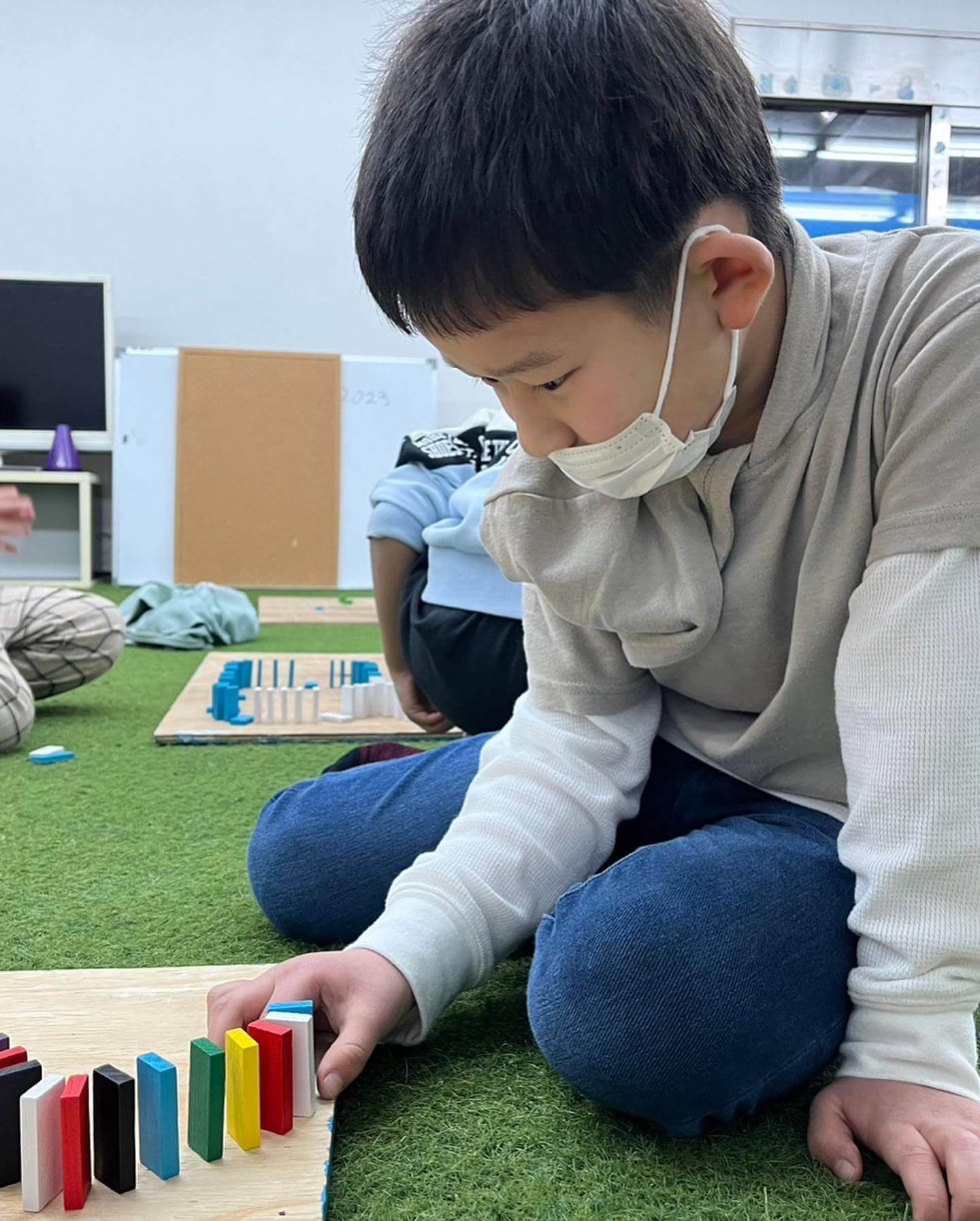 ドミノをやるのがはじめてのお友達が多かったみたいでみんなはじめは悪戦苦闘!