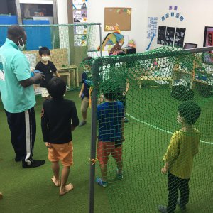 フォックスグローバルは床が全面芝生という事で、みんなでサッカーゴール、そしてオリジナルサッカースタジアムを教室の中に作ったよ!!